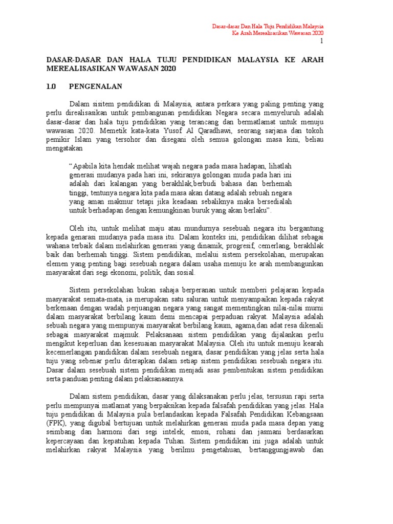 Doc Dasar Dasar Dan Hala Tuju Pendidikan Di Malaysia Arifah Azira Academia Edu